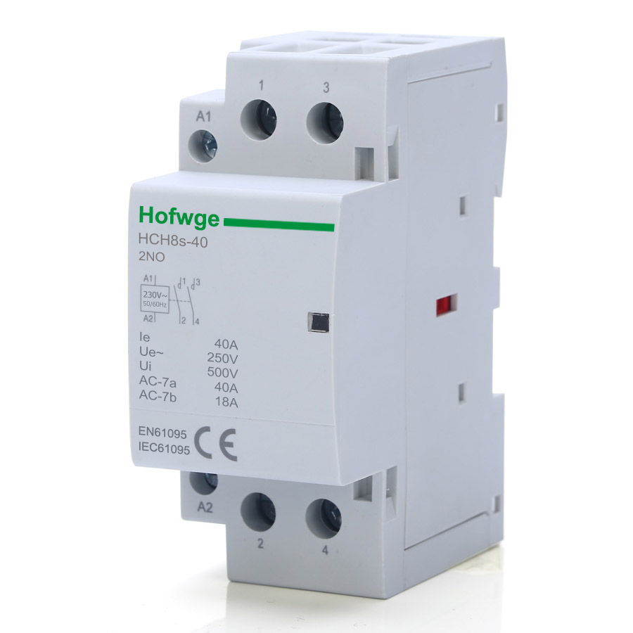 HCH8s Modular Contactor (also known as analog contactors and architectural contactors) are mainly used in power systems with AC 50Hz/60Hz, rated working voltage up to 400V and rated working current up to 100A. They are used as remote switches and control circuits in AC-1 and AC-7a (non-inductive or low-inductive loads, resistance furnaces, household appliances and similar low-inductive loads). It can also be used to control the load of household motor. Modular Contactors cant't be used in break short-circuit currents, so appropriate short-circuit protective appliances (such as small circuit breakers) should be selected when using them. It meets the standard IEC 61095.