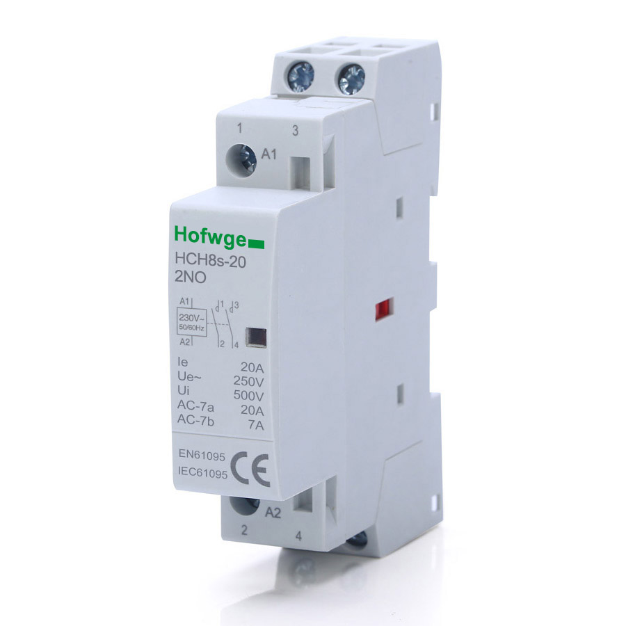 HCH8s Modular Contactor (also known as analog contactors and architectural contactors) are mainly used in power systems with AC 50Hz/60Hz, rated working voltage up to 400V and rated working current up to 100A. They are used as remote switches and control circuits in AC-1 and AC-7a (non-inductive or low-inductive loads, resistance furnaces, household appliances and similar low-inductive loads). It can also be used to control the load of household motor. Modular Contactors cant't be used in break short-circuit currents, so appropriate short-circuit protective appliances (such as small circuit breakers) should be selected when using them. It meets the standard IEC 61095.